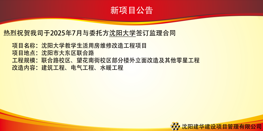 2025年7月签订沈阳大学教学生活用房维修改造工程项目的监理合同