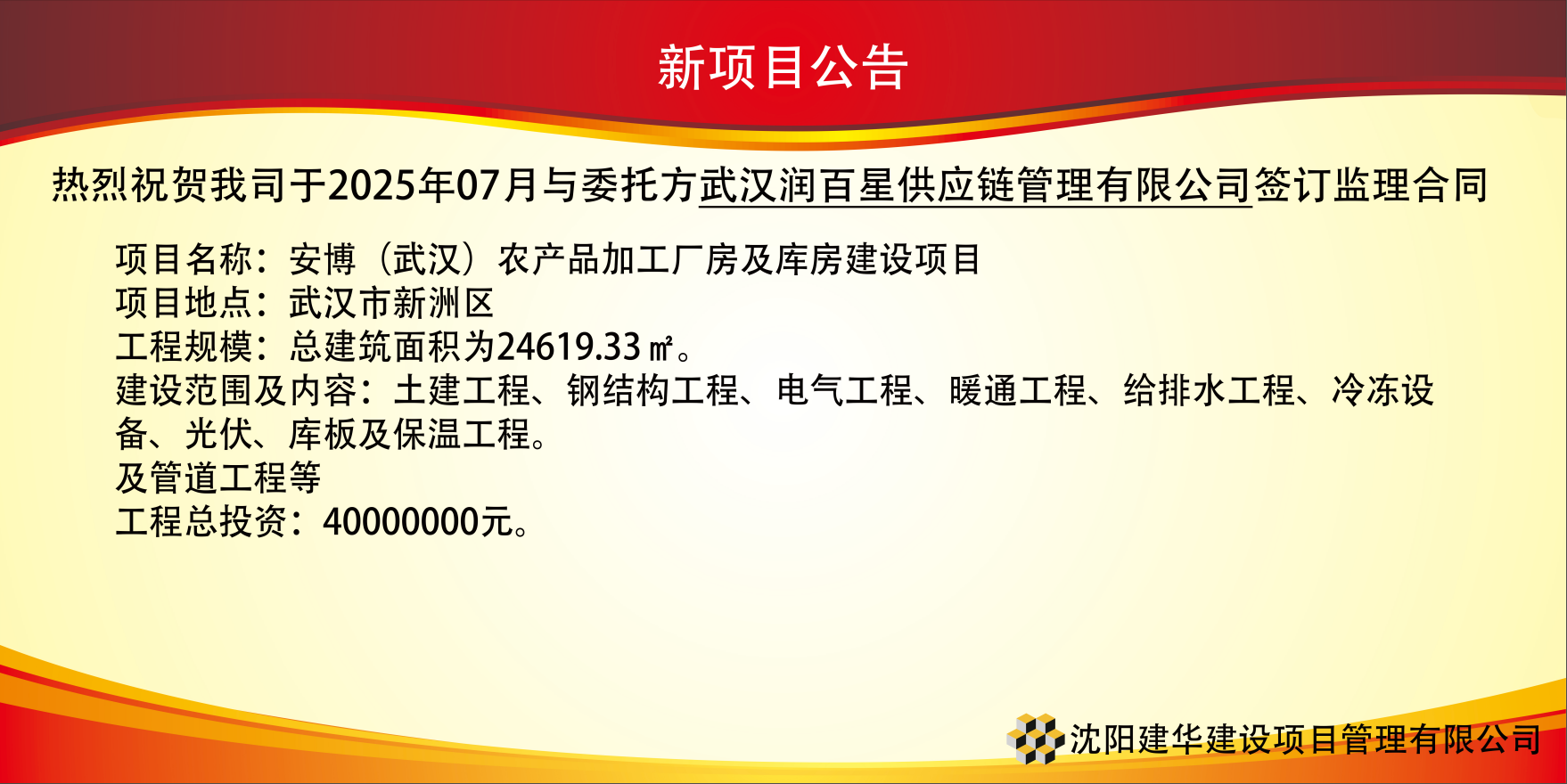 2025年07月与委托方武汉润百星供应链管理有限公司签订监理合同