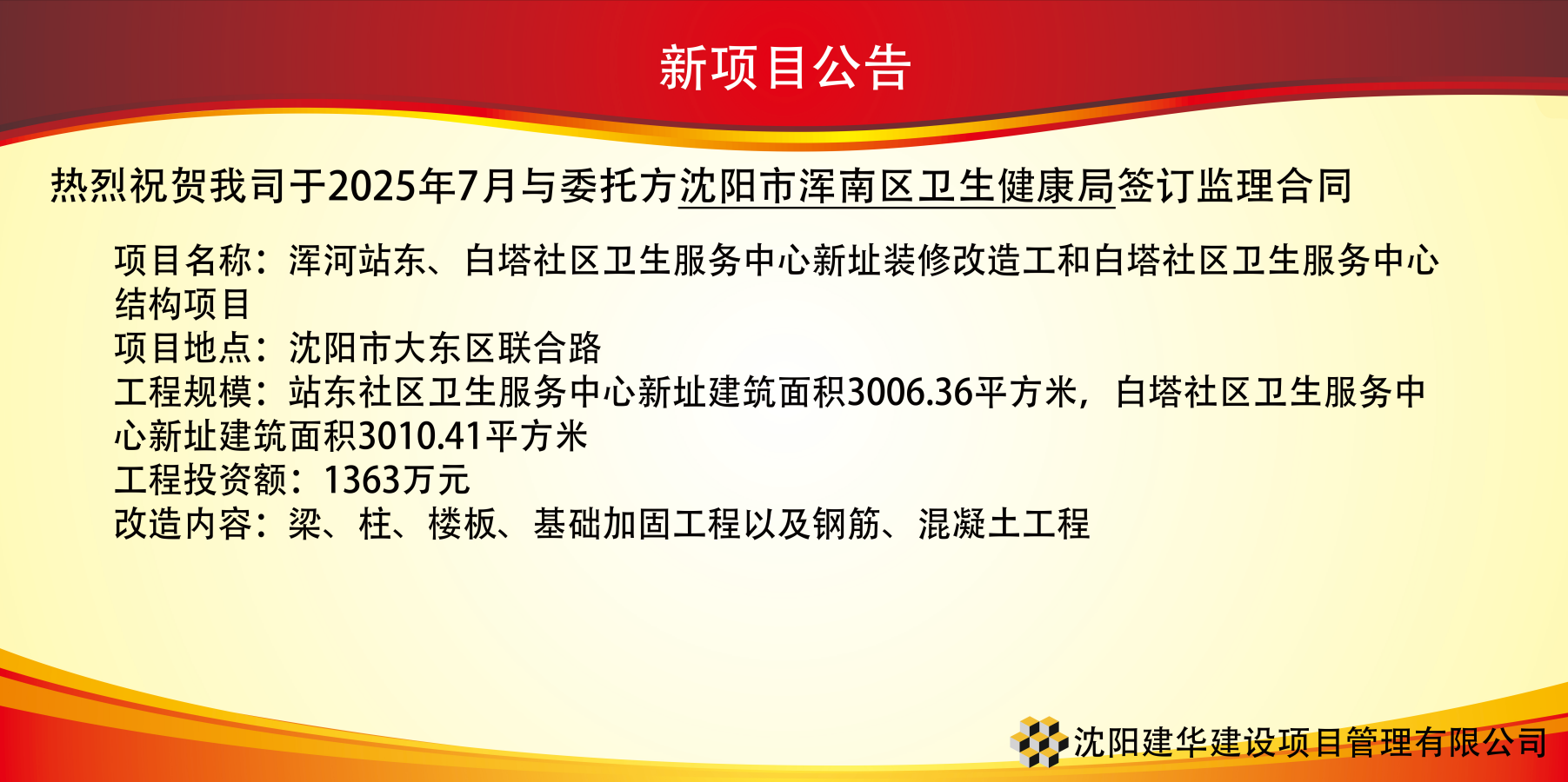 2025年7月与委托方沈阳市浑南区卫生健康局签订监理合同
