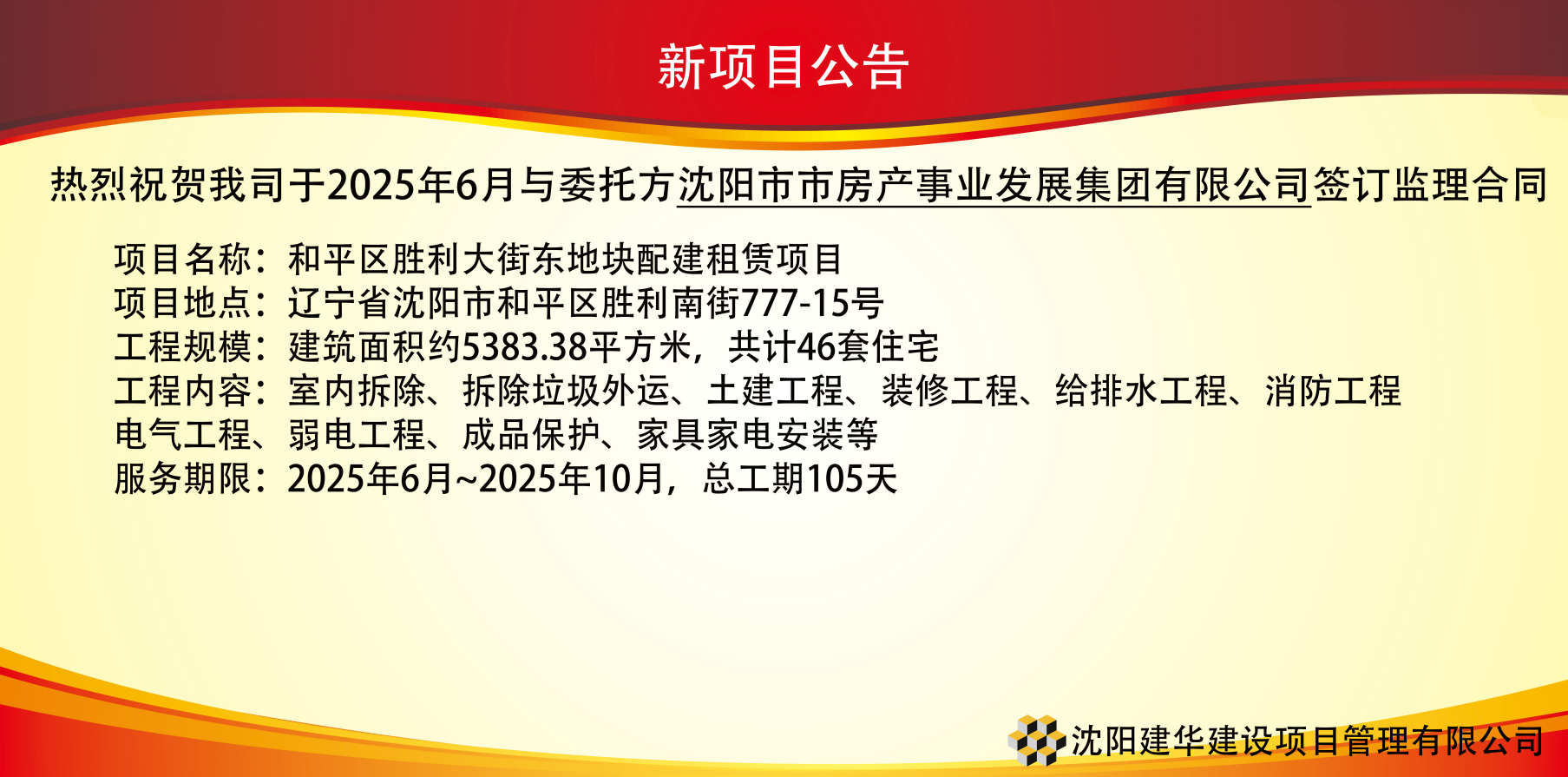 2025年6月与委托方沈阳市市房产事业发展集团有限公司签订监理合同
