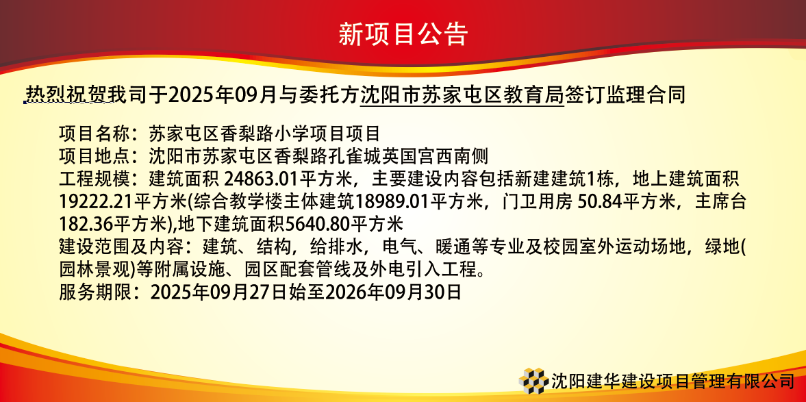 2025年9月与委托方沈阳市苏家屯教育局签订监理合同