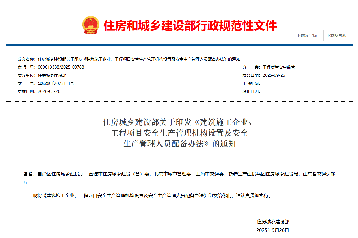 第四十二条 本办法自颁发之日起满 6 个月后实施,《住房城乡建设部关于印发〈建筑施工企业安全生产管理机构设置及专职安全生产管理人员配备办法〉的通知》(建质〔2008〕91 号) 和《住房城乡建设部关于印发〈建筑施工企业负责人及项目负责人施工现场带班暂行办法〉的通知》(建质〔2011〕111 号)同时废止。