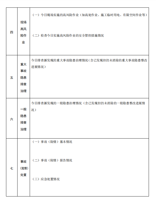 (二)施工安全日志应当由项目负责人签字确认。项目当日存在下列情形之一的,还应当由项目负责人签字确认: