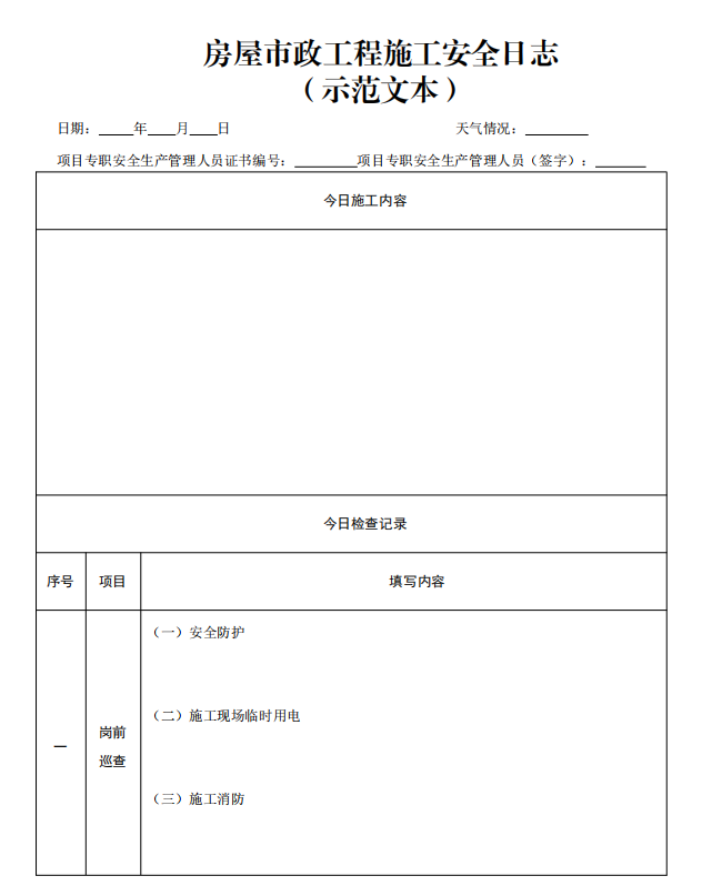 附件:房屋市政工程施工安全日志(示范文本)附件