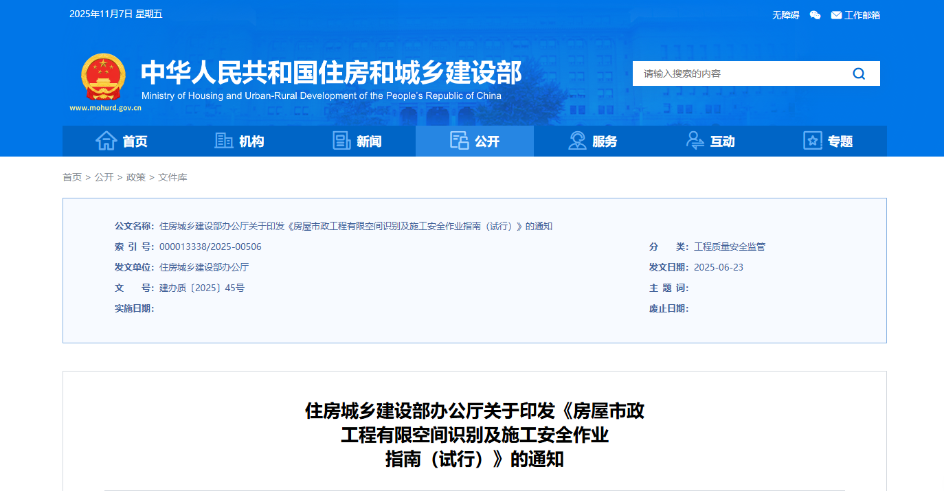 2025年开始执行房屋市政工程有限空间识别及施工安全作业指南(试行)