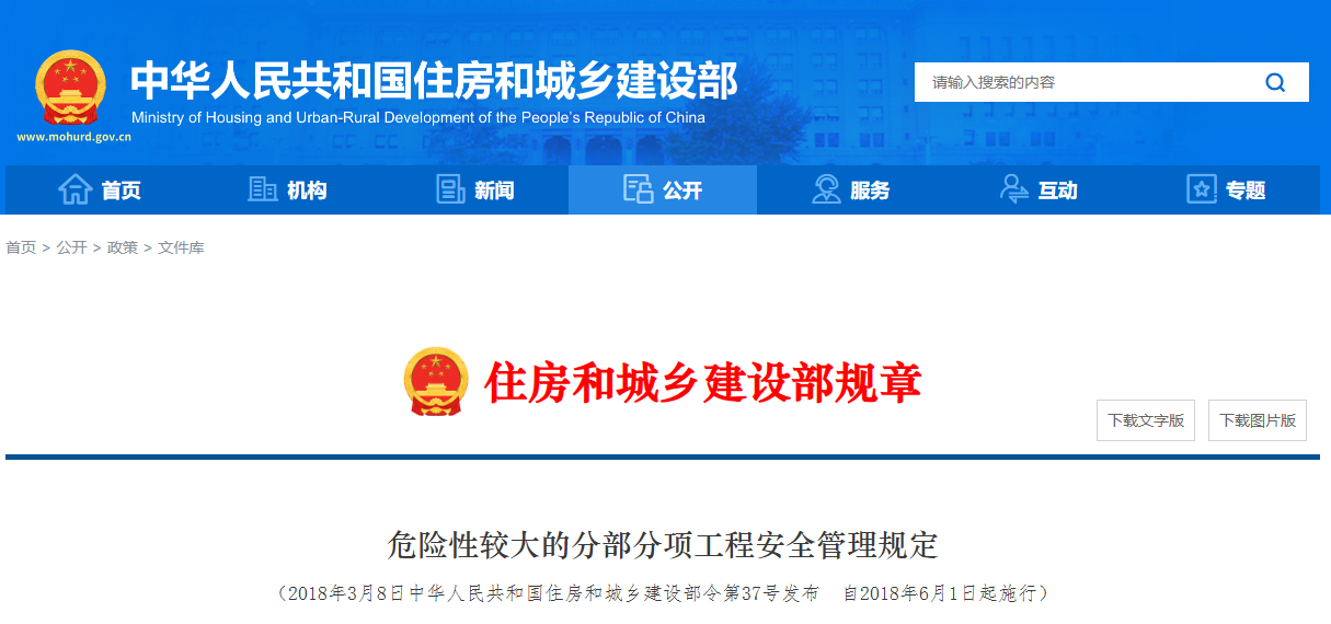 第四条 国务院住房城乡建设主管部门负责全国危大工程安全管理的指导监督。