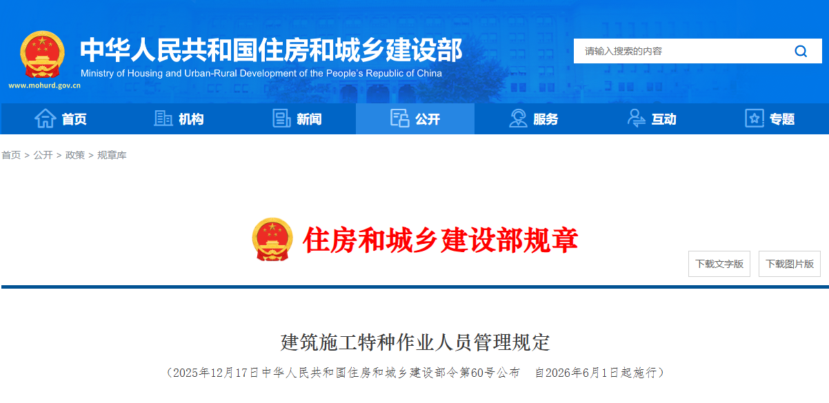 第六章 附则 第四十五条 本规定自2026年6月1日起施行。《住房和城乡建设部关于印发〈建筑施工特种作业人员管理规定〉的通知》(建质〔2008〕75号)同时废止。
