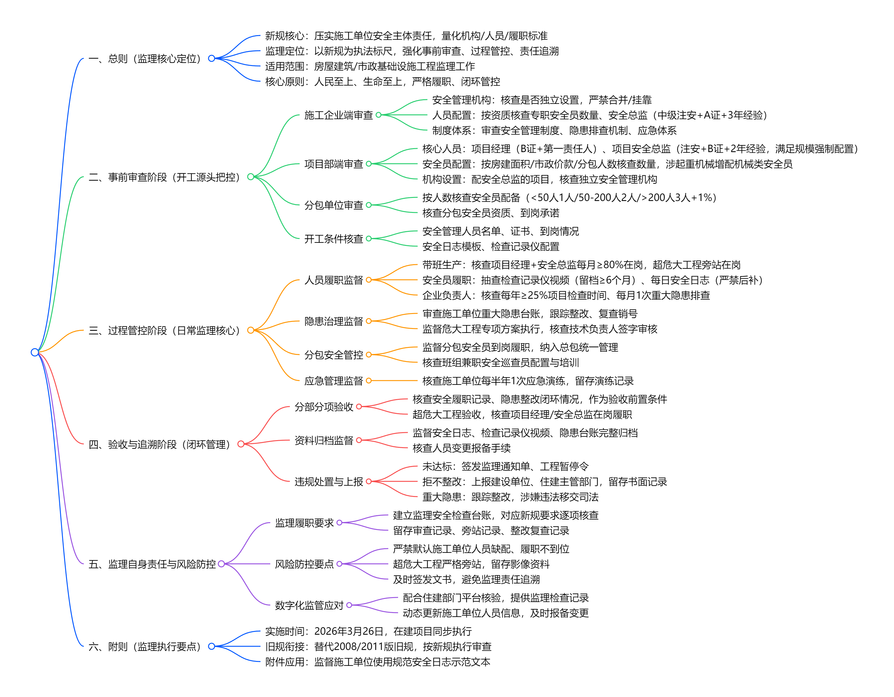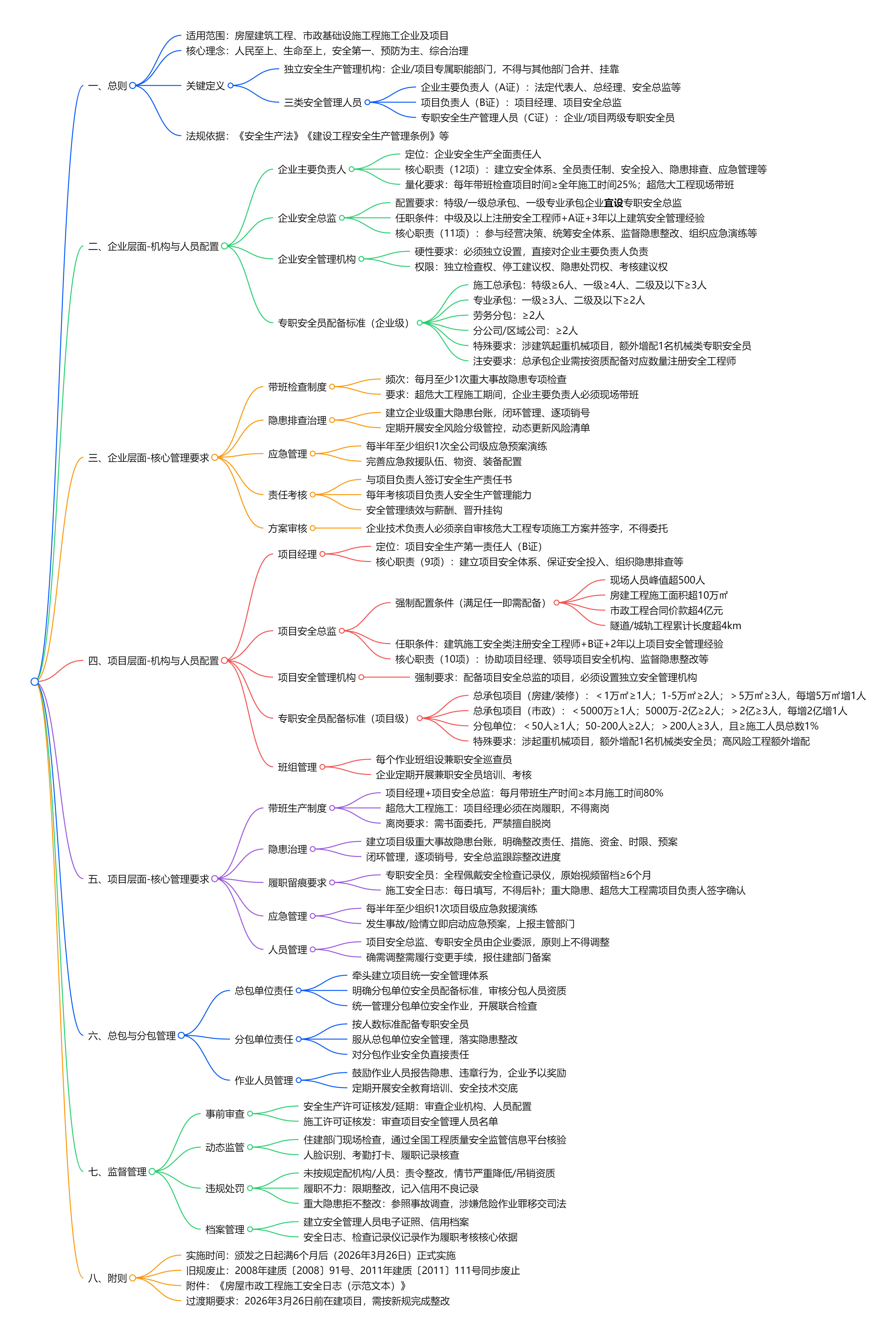 监理视角解读《建筑施工企业、工程项目安全生产管理机构设置及安全生产管理人员配备办法》思维导图